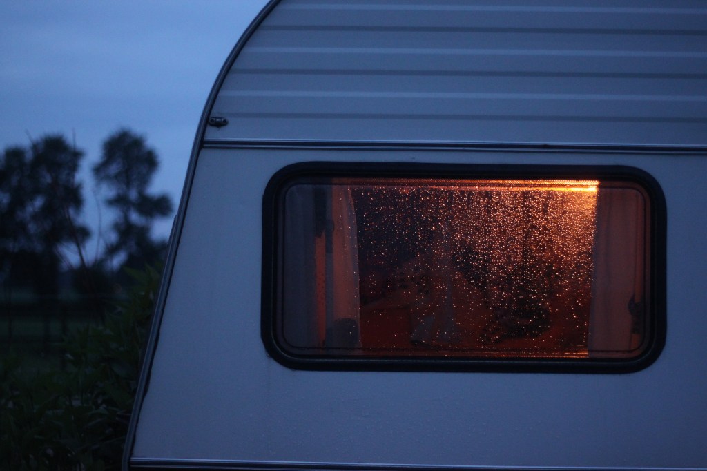 Een caravan op een landje waar niemand is – daar droomt ze van. Een landje, een uitzicht, en dat het zonlicht in gouden banen door de bomen schijnt, eikels vallen op het pad, de ganzen vliegen over.